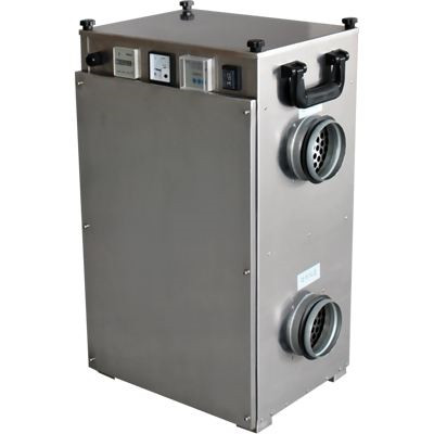 轉輪除濕機的除濕轉輪在隔成除濕區與再生區的箱體內以6-18rph速率作360°圓周運動,需除濕的處理空氣經除濕區時,由除濕轉輪中的吸濕材料吸收空氣中的水份,從而得到干燥空氣;當吸收水份的轉輪區域旋轉至箱體再生區域時,由經再生加熱器加熱后的空氣解吸除濕轉輪吸收的水份排至室外,轉輪吸濕與解吸同時進行,確保除濕機組能夠提的干燥空氣。